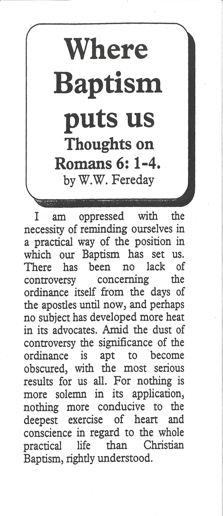 WHERE BAPTISM PUTS US - W. W. FEREDAY
